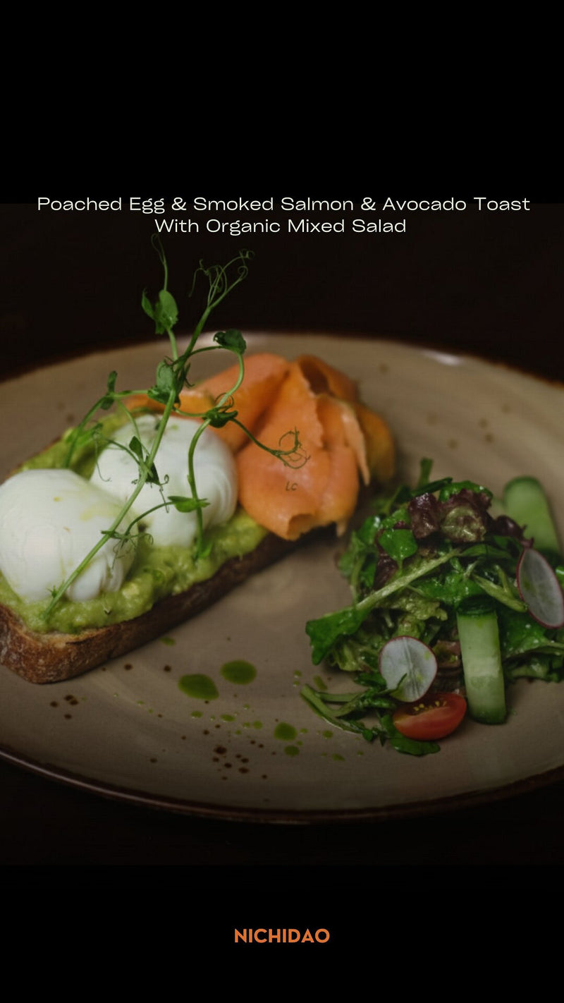 Poached Egg & Smoked Salmon & Avocado Toast with Organic Mixed Salad